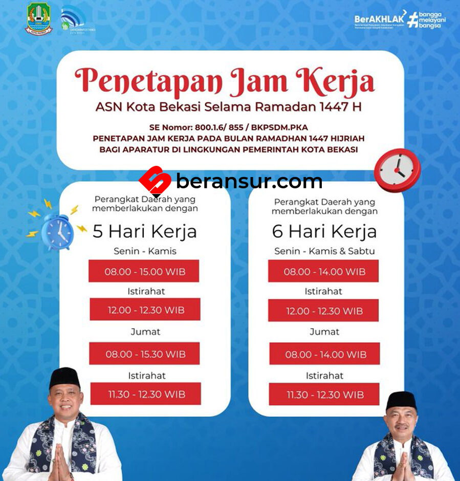 Beransur, Bekasi, 16 Februari 2026 – Pemerintah Kota (Pemkot) Bekasi resmi memberlakukan penyesuaian jadwal operasional bagi Aparatur Sipil Negara (ASN) di lingkungannya selama bulan suci Ramadan 1447 H. Kebijakan ini diambil untuk menjaga produktivitas kerja sekaligus memberikan keleluasaan bagi pegawai dalam menjalankan ibadah puasa.